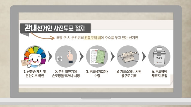선거일에는 정해져 있는 주소지 투표소에 가서 투표하셔야 합니다.